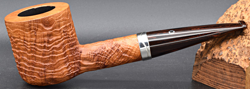 *** USA SALES ONLY*** Unfortunately I will not be able to make any international sales until further notice. Any attempt for purchase other than USA will be canceled and payment refunded with buyer responsible for any PayPal fees*** I always really like the natural finishes and I have been fortunate to have made two in a row! I know how quickly they color as I have several and I can vision this piece in the near future as having a wonderful patina. The blast came out awesome on this piece ant the smooth top really adds to the overall look. The natural Cumberland seems goes very well with the finish. Nice capacity and it is a sitter. Hand cut Traditional Cumberland mouthpiece w/Delrin tennon, hand made solid sterling silver “Wide Wavy” fitment. Thank you very much for looking and your consideration of my work.